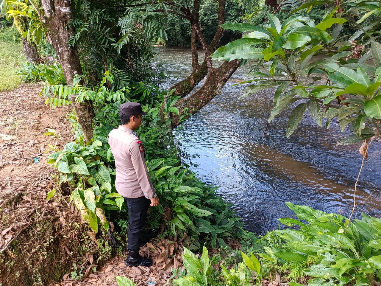 Lamandau – Polsek Delang, Piket Polsek Delang melakukan kegiatan rutin pengecekan debit air DAS Delang di TMA Kelurahan Kudangan RT.02 Kecamatan Delang, Selasa (6/1/26) Pagi