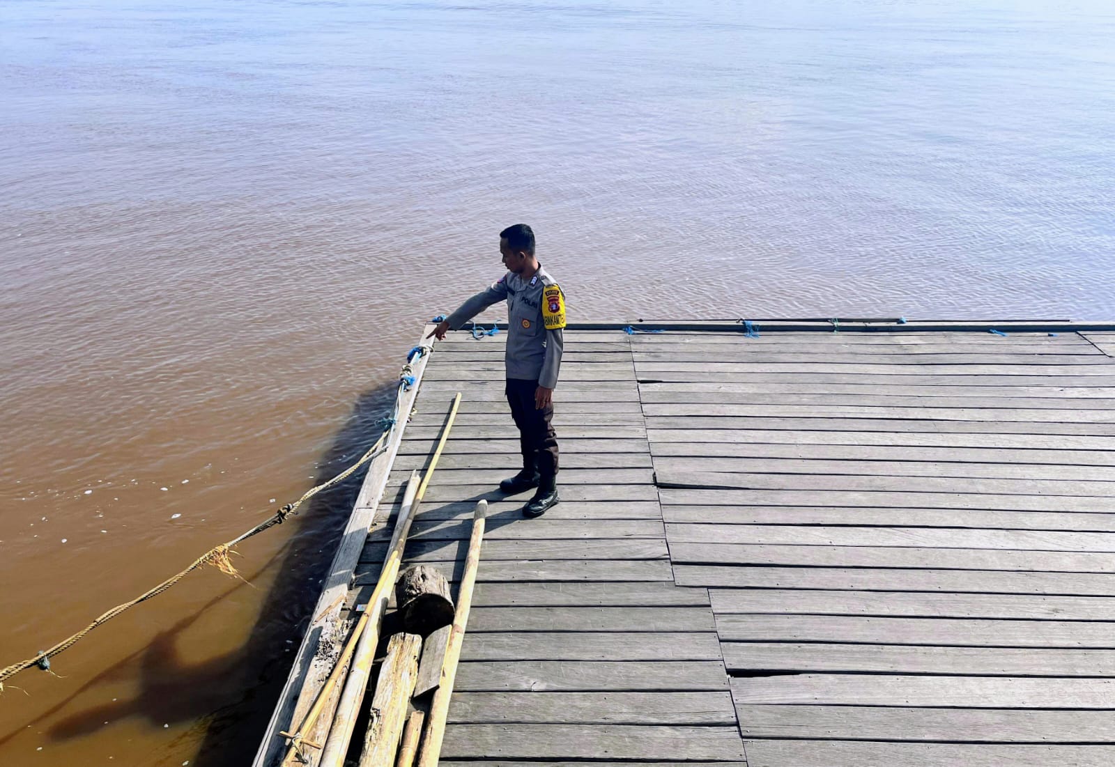 Polres Katingan — Personil Polsek Katingan Kuala melakukan pengecekan debit air di kawasan muara pesisir Pegatan, Kecamatan Katingan Kuala, Jum’at (9/1/26) pagi.