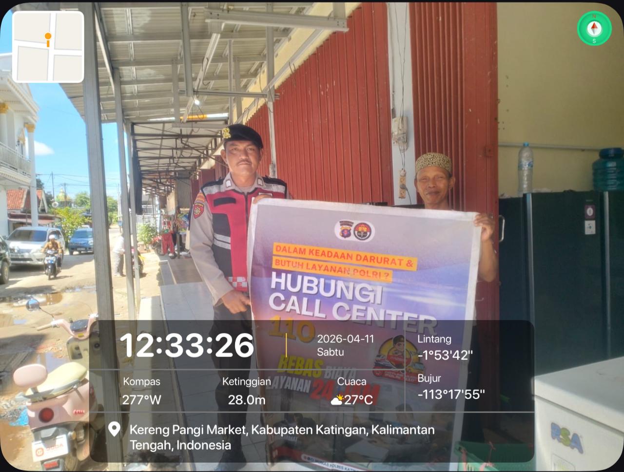 Samapta Polres Katingan melaksanakan kegiatan sosialisasi layanan Call Center 110 Polri kepada masyarakat Desa Hampalit, Kecamatan Katingan Hilir, Kabupaten Katingan, Sabtu (11/4/2026). Siang.