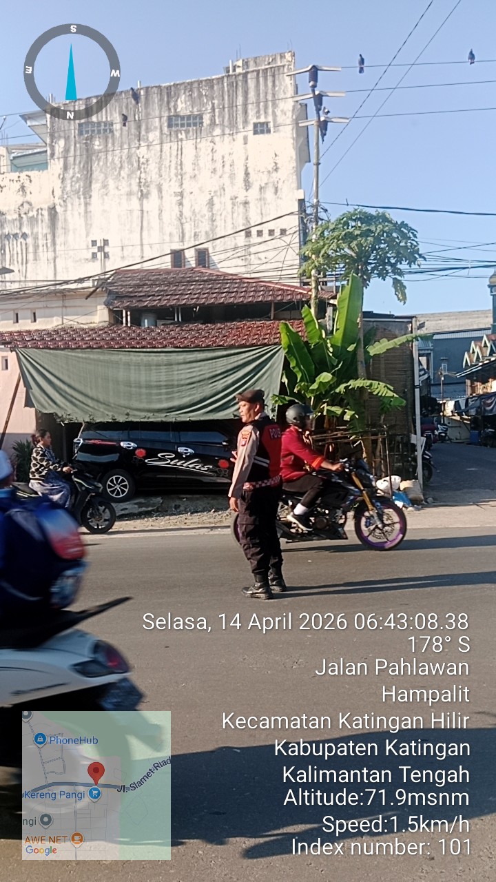 Samapta Polres Katingan – Dalam upaya menjaga kelancaran arus lalu lintas serta memberikan rasa aman kepada masyarakat, personel Satuan Samapta Polres Katingan melaksanakan kegiatan pengaturan (gatur) pagi di sejumlah titik rawan kemacetan, Selasa (14/4/2026). Pagi.