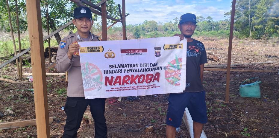 Melalui Media Spanduk, Polsek Tewang Sangalang Garing dan Pulau Malan Imbau Warga Tidak Terjerumus Penyalahgunaan Narkoba.