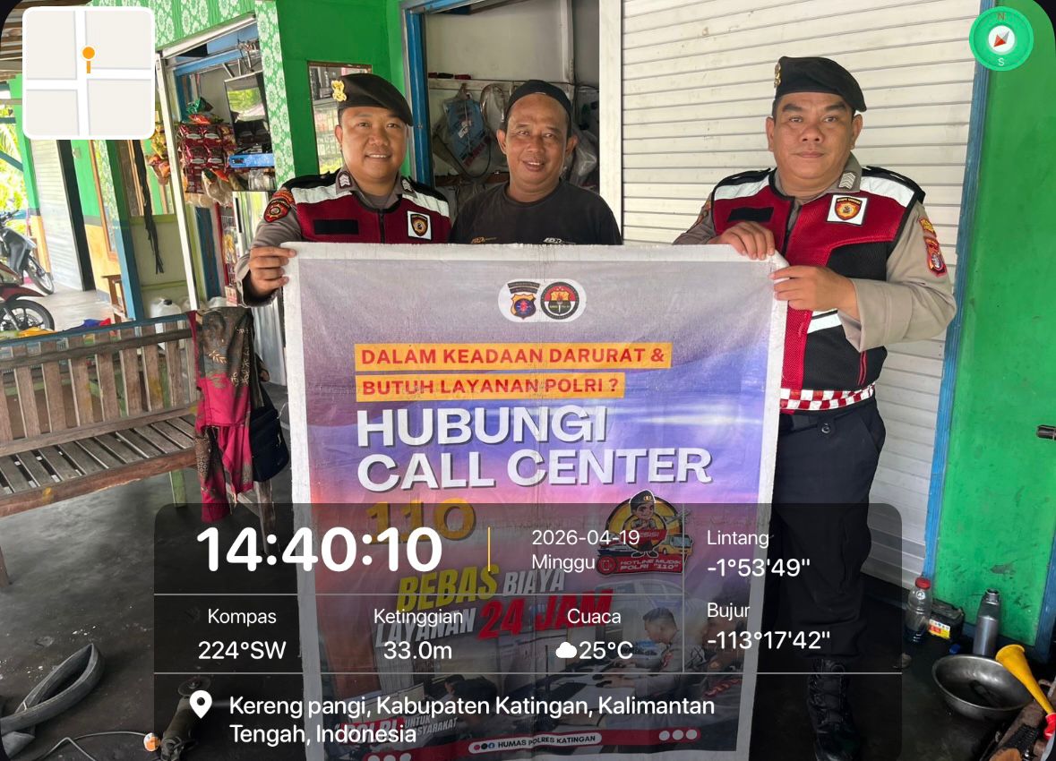 Samapta Polres Katingan melaksanakan kegiatan sosialisasi layanan Call Center 110 Polri kepada masyarakat Desa Hampalit, Kecamatan Katingan Hilir, Kabupaten Katingan, minggu (19/4/2026). Siang.
