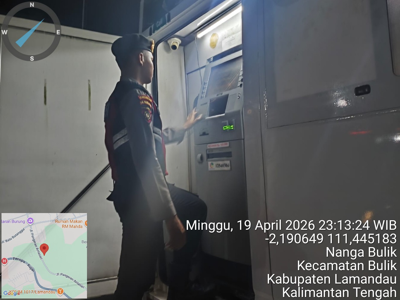 Lamandau – Satuan Sat Samapta Polres lamandau melaksanakan patroli di pemukiman masyarakat dan bank yang ada di kawasan lamandau untuk memastikan keselamatan dan keamanannya. Personel tersebut memeriksa langkah-langkah keamanan bank, Minggu (19/4/2026) Malam.