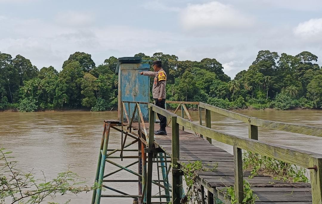 Polres Katingan- Personel Piket Sentra Pelayanan Kepolisian Terpadu (SPKT) II Polsek Tewang Sangalang Garing dan Pulau Malan, Polres Katingan, Polda Kalteng, Bripka Jon Praisen. melaksanakan pengecekan ketinggian debit air di Daerah Aliran Sungai (DAS) Katingan, wilayah Kelurahan Pendahara Kecamatan Tewang Sangalang Garing, Rabu (22/04/2026) siang.