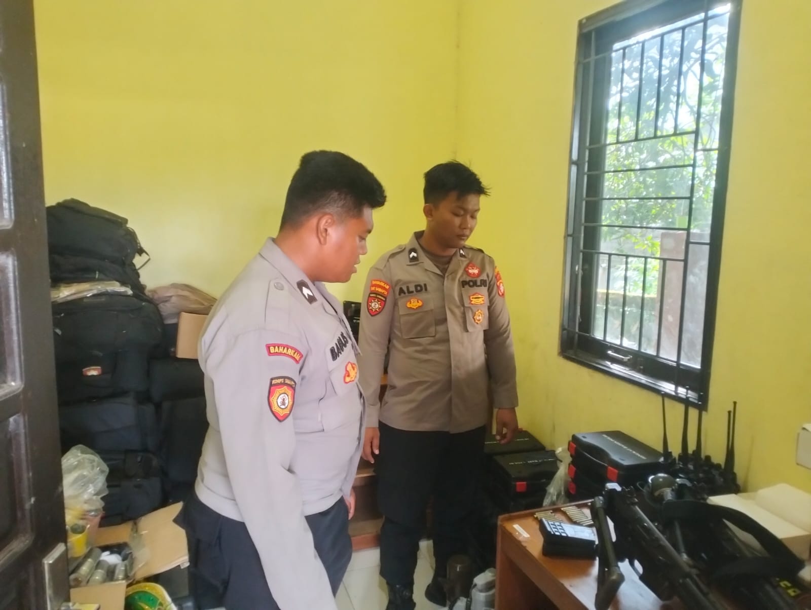 Serah terima piket meliputi pengecekan kondisi Mako, kelengkapan inventaris penjagaan, serta situasi dan kondisi terkini di lingkungan sekitar. Barang inventaris yang diperiksa antara lain perlengkapan keamanan, alat komunikasi, serta buku mutasi penjagaan. Ungkap kasat.