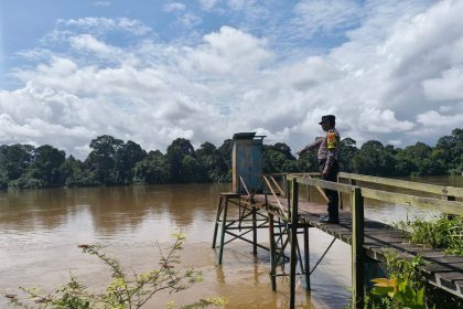 Polres Katingan – Mendeteksi potensi bencana banjir, Bhabinkamtibmas Polsek Katingan Hulu dan Bukit Raya, Polres Katingan, Polda Kalteng Aipda Denny Ariadi melakukan pemantauan debit air ...